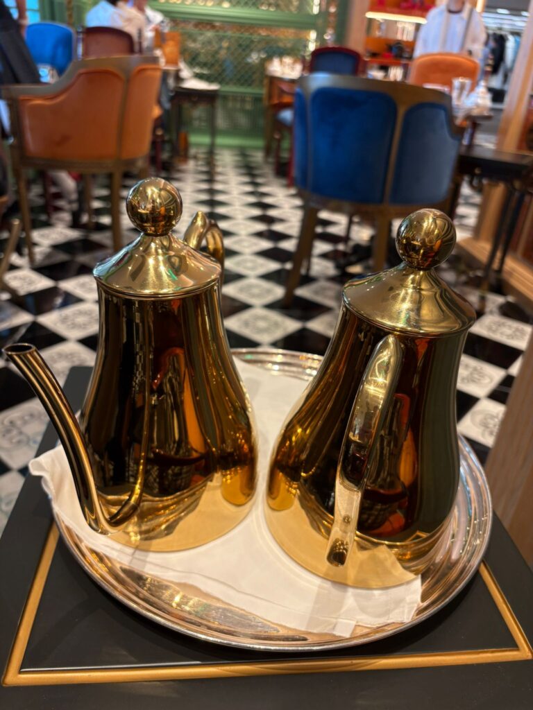 コーヒーはこのようなポットに入って運ばれてきます。かなりの量が入っていました!