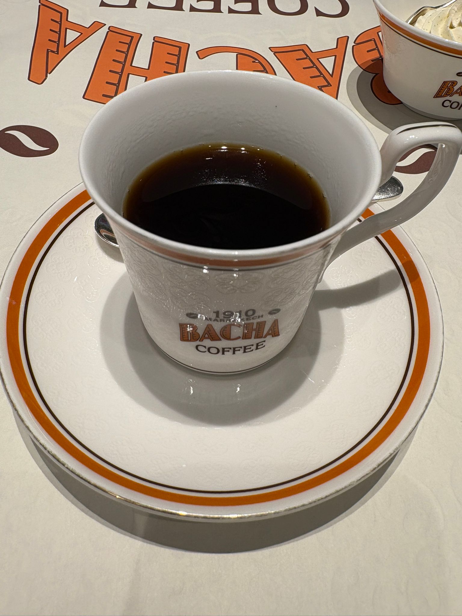 コーヒーはこんな感じ。私のはデカフェでしたが、けっこうしっかりコーヒーの味だったのでデカフェでも満足!