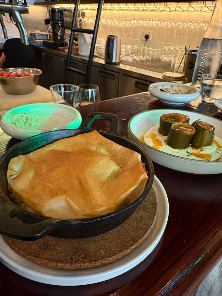 私は中東料理のなかでもフムスが大好きなので、前菜はフムス、メインはFISH KAFTA(魚のパイ)にしてみました。