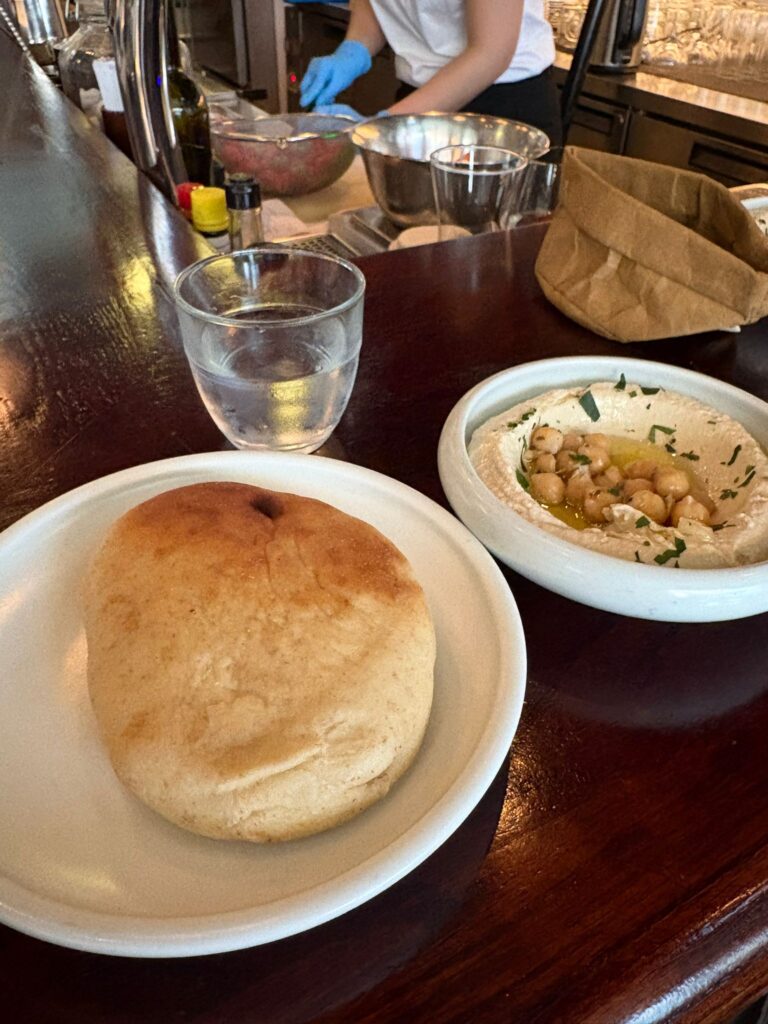 前菜のフムスはめっちゃ美味しい!フムスはいろんなところで食べましたが、ここのフムスは少し酸味が効いていてかなり好みの味でした!ピタパンもあったかくて美味しい🤤