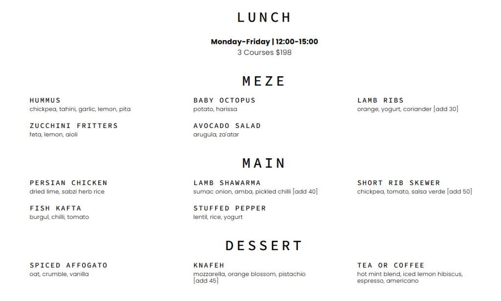 お店の名前はFRANCIS。友達が調べてくれて一緒に行ったのですが、行ってみたら何回か前を通ったことがありました。おしゃれで中東料理のお店だとは思わなかった!このお店はセントラルにもあるみたいです。
