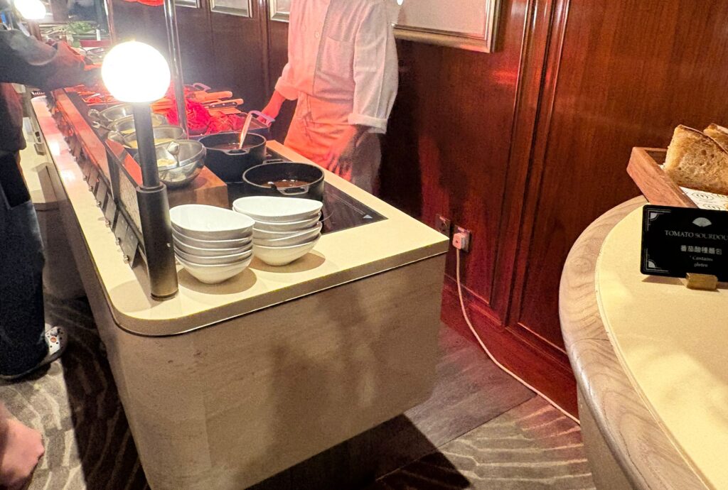 席に着いたらさっそくビュッフェを取りに行っていいとのこと。ちなみに、ドリンクバーはなく水だけ出されるため、何か別の飲み物を飲みたい場合は別料金で頼む必要があるそうです。
