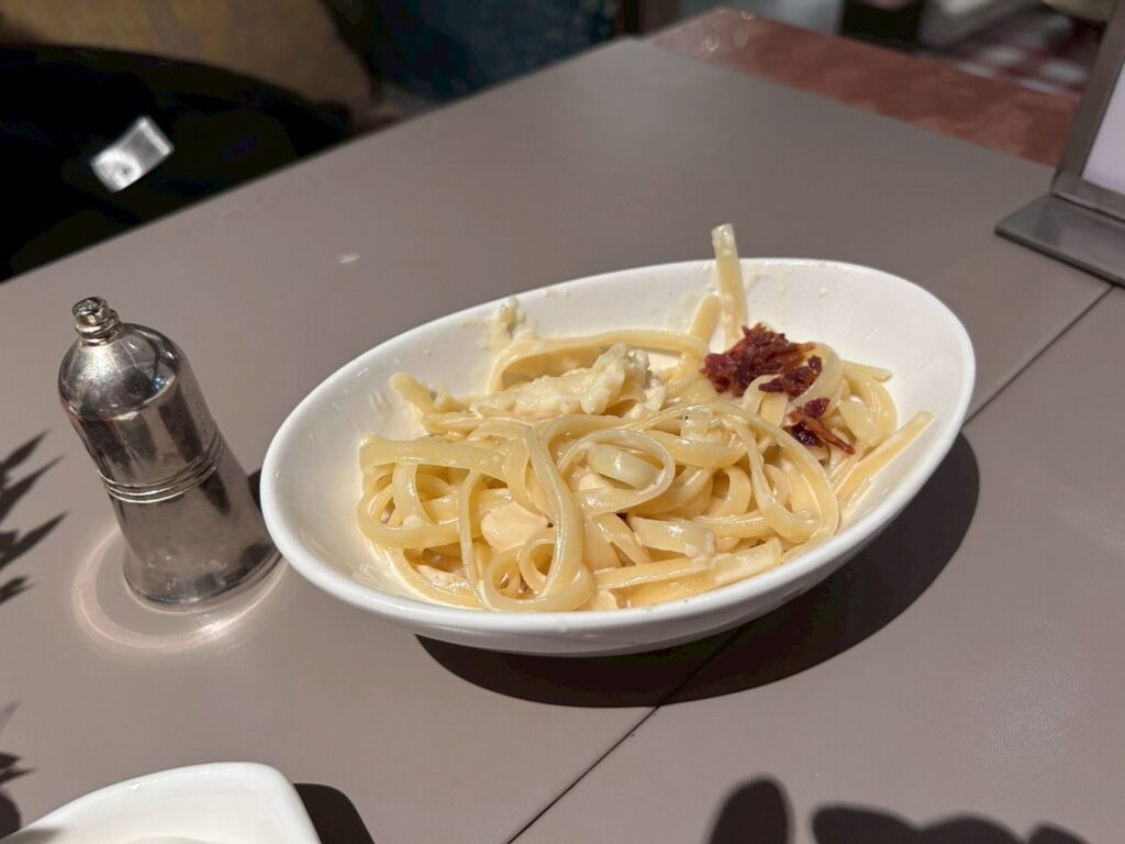 シェフがカルボナーラを作ってくれるところもあり、これがなかなか本格的なお味でした!