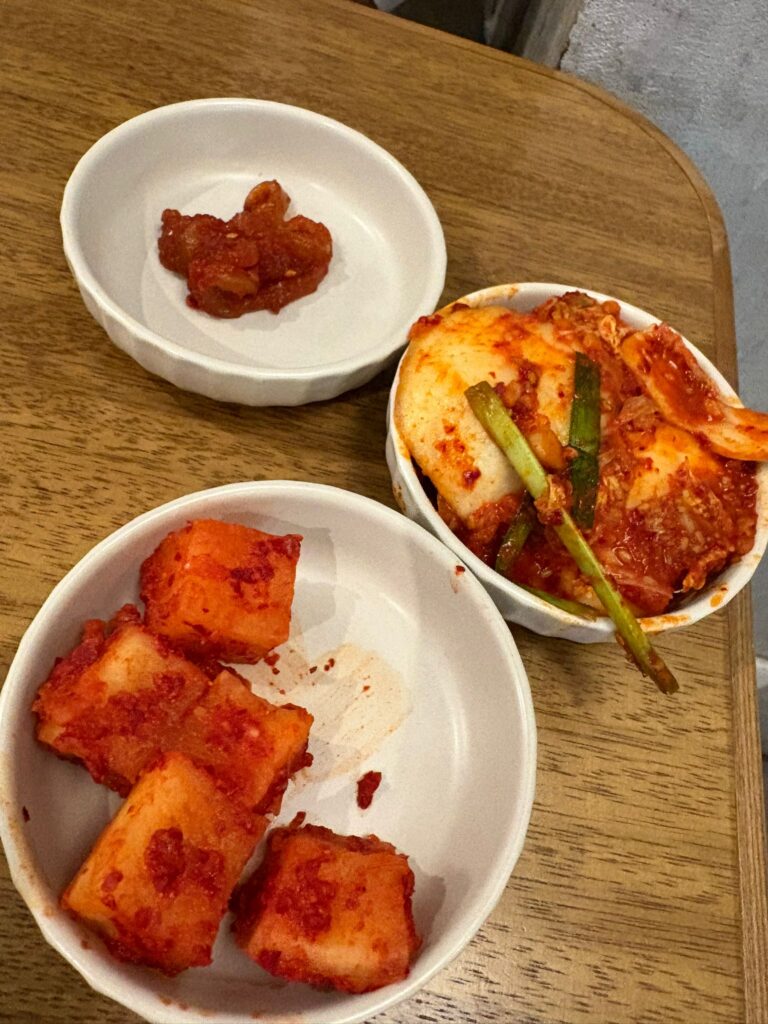 まずキムチがやってきました。本格的なキムチで美味しい!