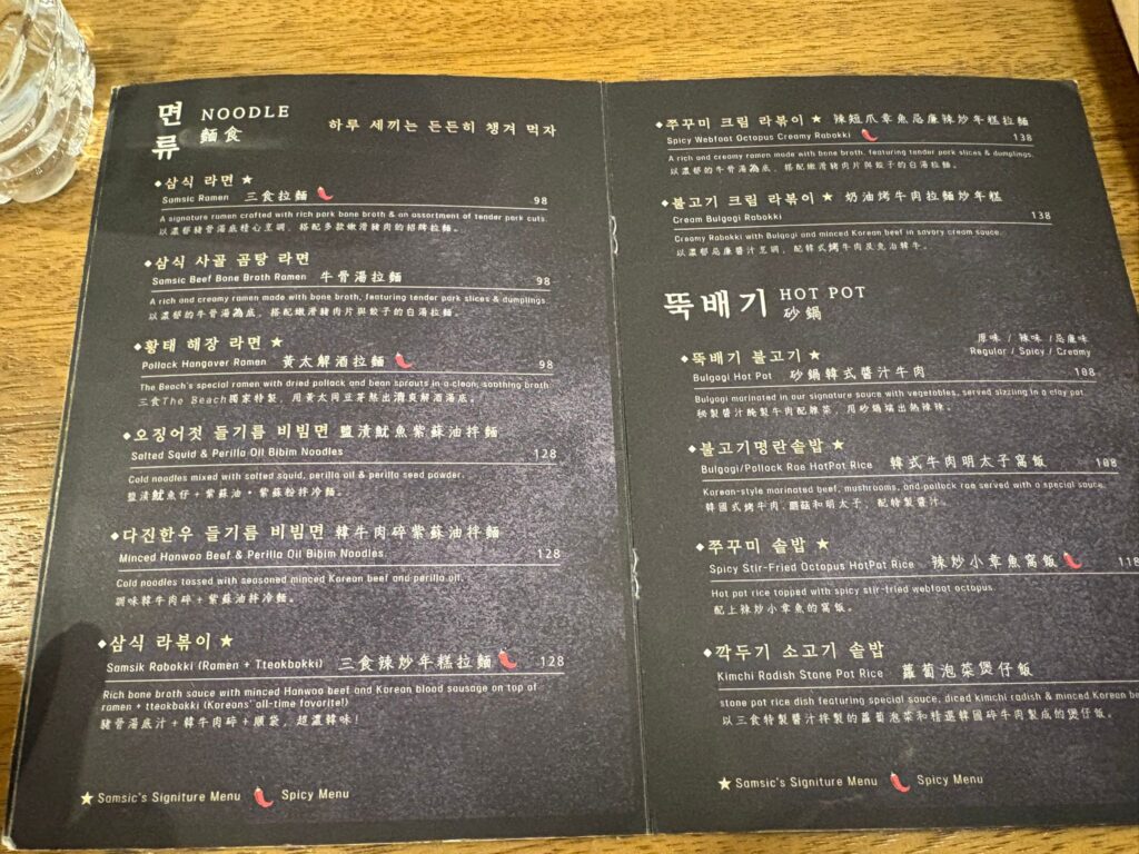 三食(Samsic)はスープ料理がメインのお店です。香港には韓国料理のお店はたくさんあるけれど、こういったスープ系のお店はあんまりない気がするので楽しみ!